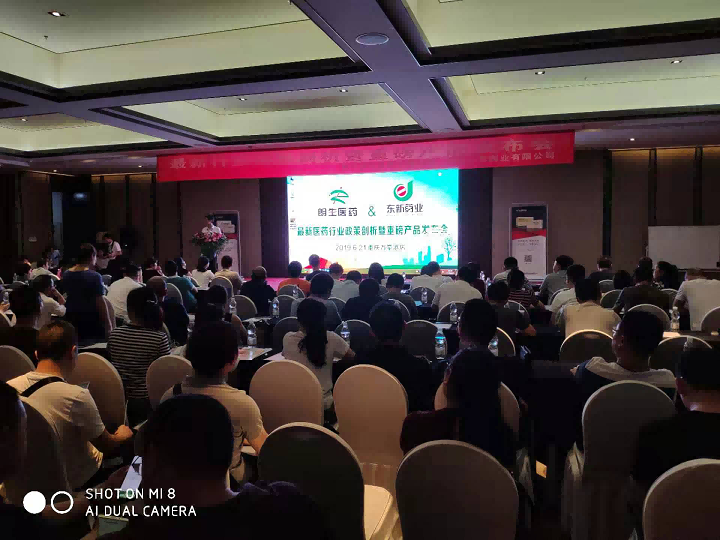 2019年6月21日,東新藥業(yè)攜手朗生醫(yī)藥在重慶召開(kāi)“最新醫(yī)藥行業(yè)政策剖析及應(yīng)對(duì)措施暨東新藥業(yè)重磅產(chǎn)品發(fā)布會(huì)”。東新藥業(yè)副董事長(zhǎng)王老師在會(huì)上做了行業(yè)政策剖析及應(yīng)對(duì)措施演講,并進(jìn)行了重磅產(chǎn)品發(fā)布,200多位醫(yī)藥營(yíng)銷(xiāo)專業(yè)人士參加了本次會(huì)議。