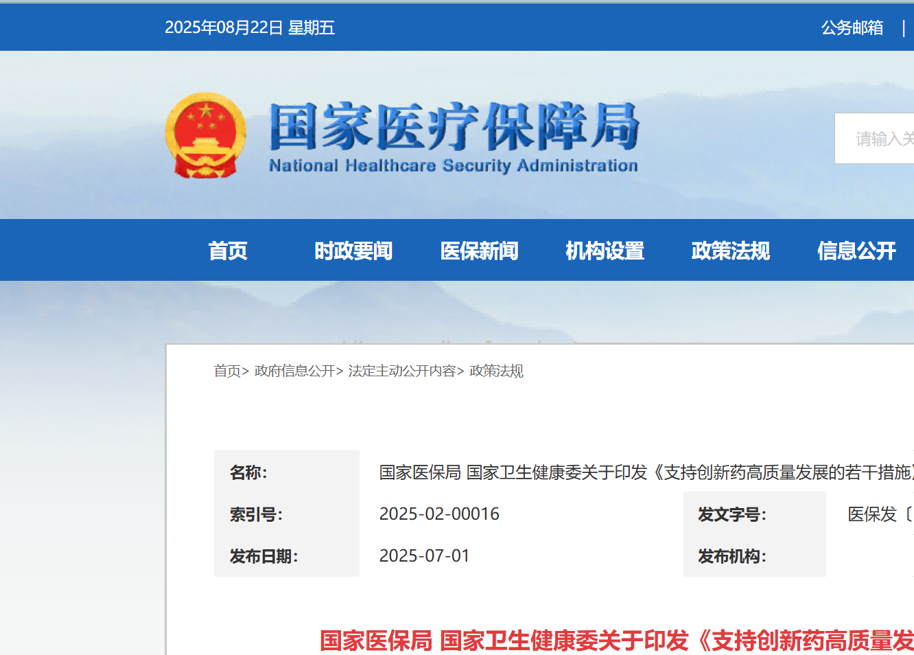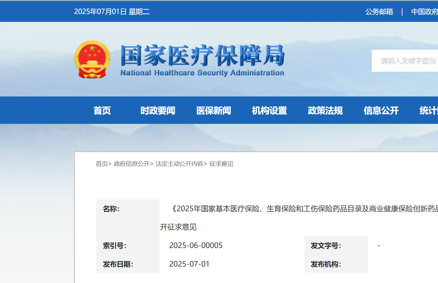 《2025年國家基本醫療保險、生育保險和工傷保險藥品目錄及商業健康保險創新藥品目錄調整工作方案》等相關文件公開征求意見