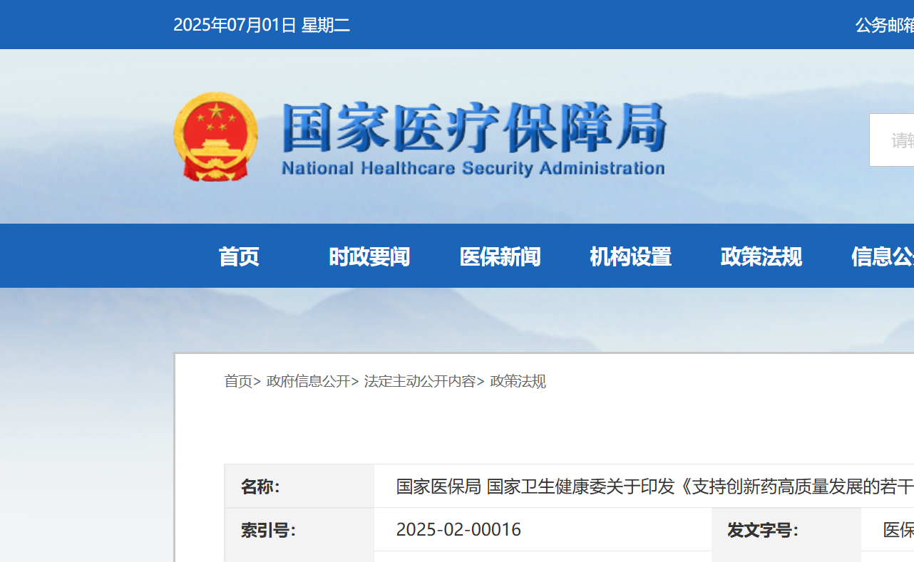 國家醫(yī)保局 國家衛(wèi)生健康委關(guān)于印發(fā)《支持創(chuàng)新藥高質(zhì)量發(fā)展的若干措施》的通知